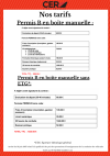 A noter: le volume d’heures pour un permis sur un véhicule à boîte de vitesses manuelle est de 20 heures minimum et sur boîte automatique de 13 heures minimum.